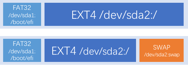 这里我们是Legacy Boot + MBR环境,安装分区是/dev/sda1,使用交换文件,请勿无脑复制粘贴