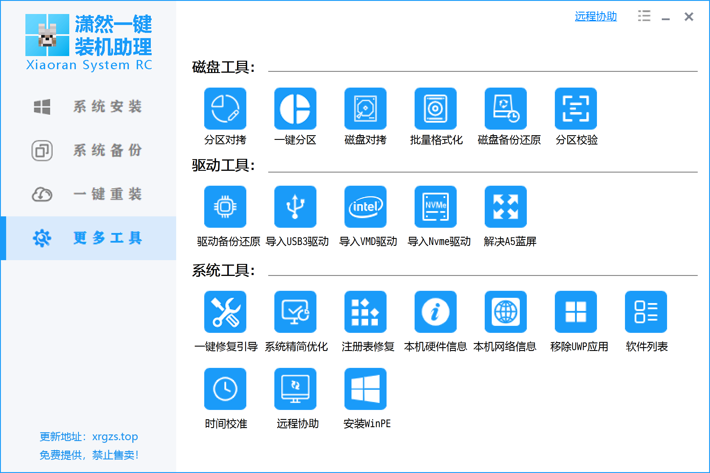 潇然一键装机助理 Xiaoran System Onekey RC 是一个方便安装系统及系统维护的工具,同时提供丰富的扩展功能,目前简称“XROK”。