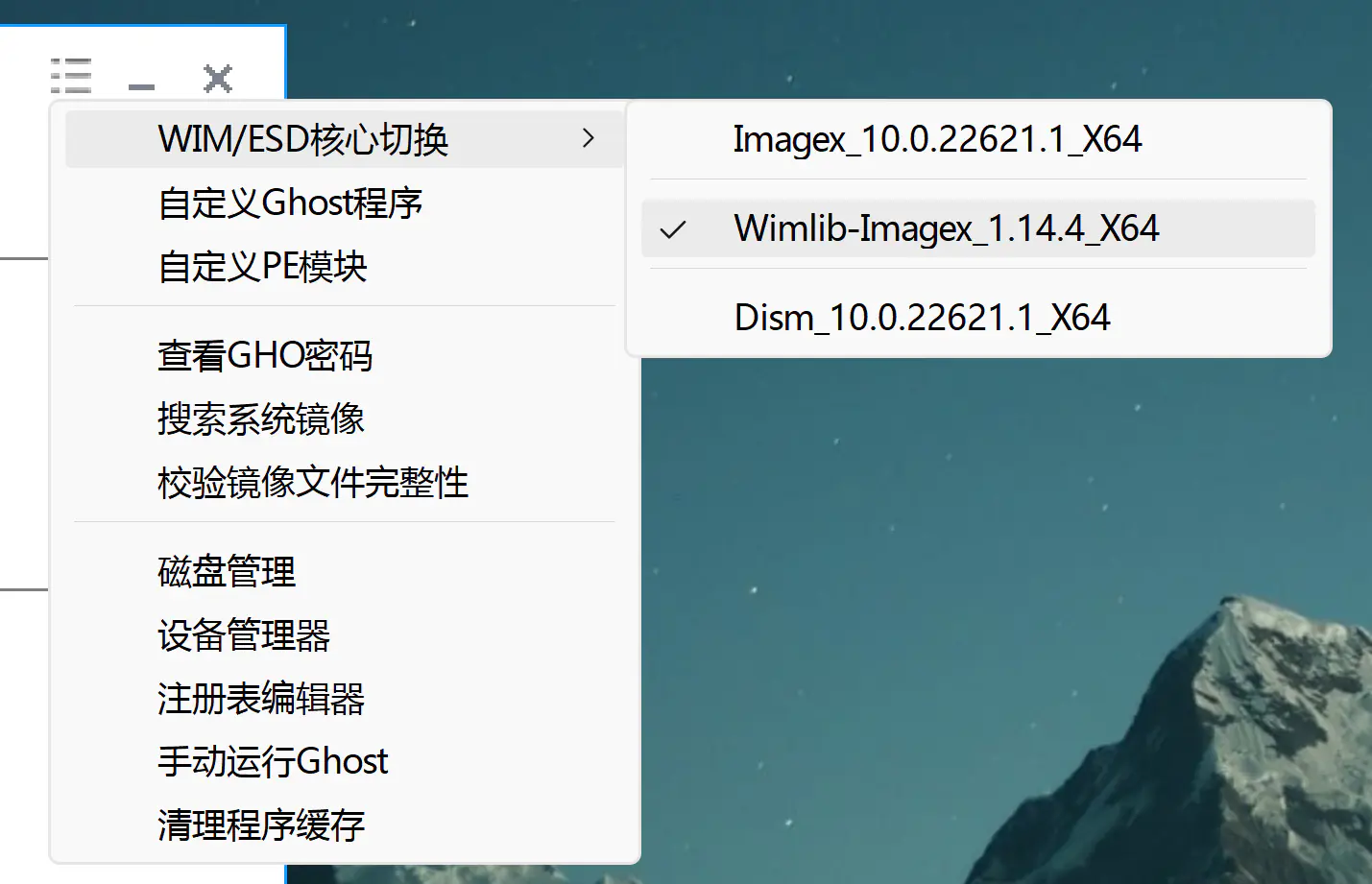 ImageX、Wimlib-ImageX、Ghost、DISM 四核心。