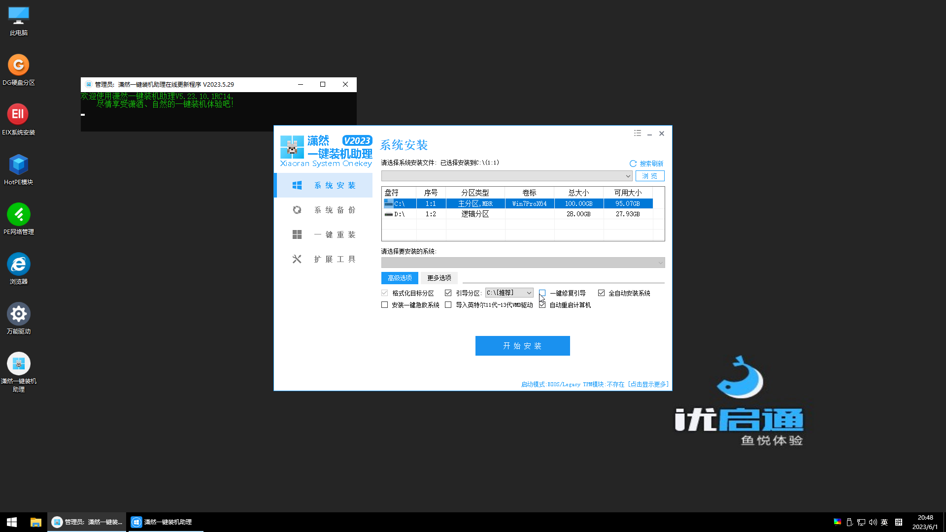 第二种(推荐):PE环境下使用潇然一键装机助理安装系统
