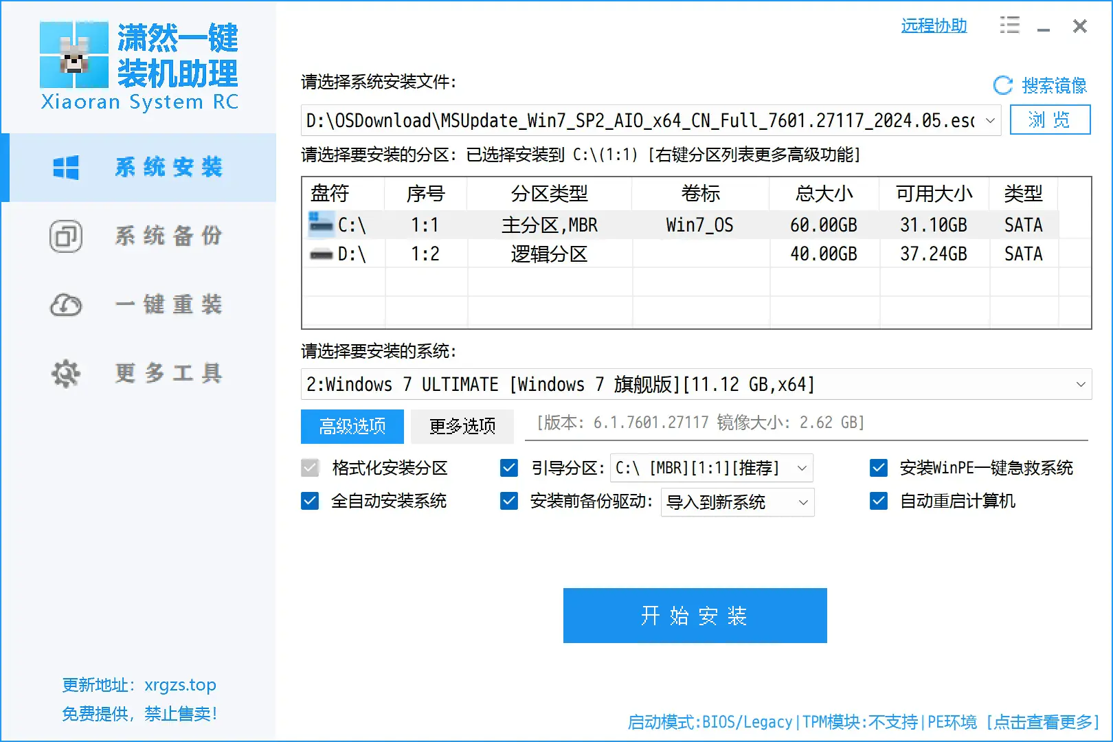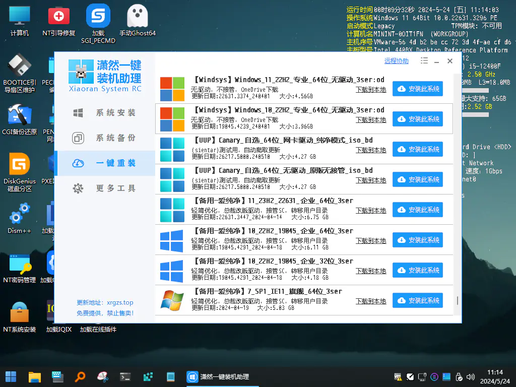- 目前在线重装列表由程序自动构建 / 生成,第三方系统将逐步去除,潇然系统相关组件会自动校验MD5信息